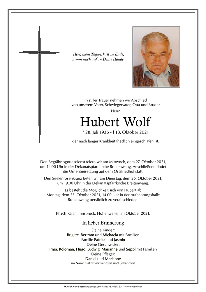 Kondolenzbuch für Hubert Wolf