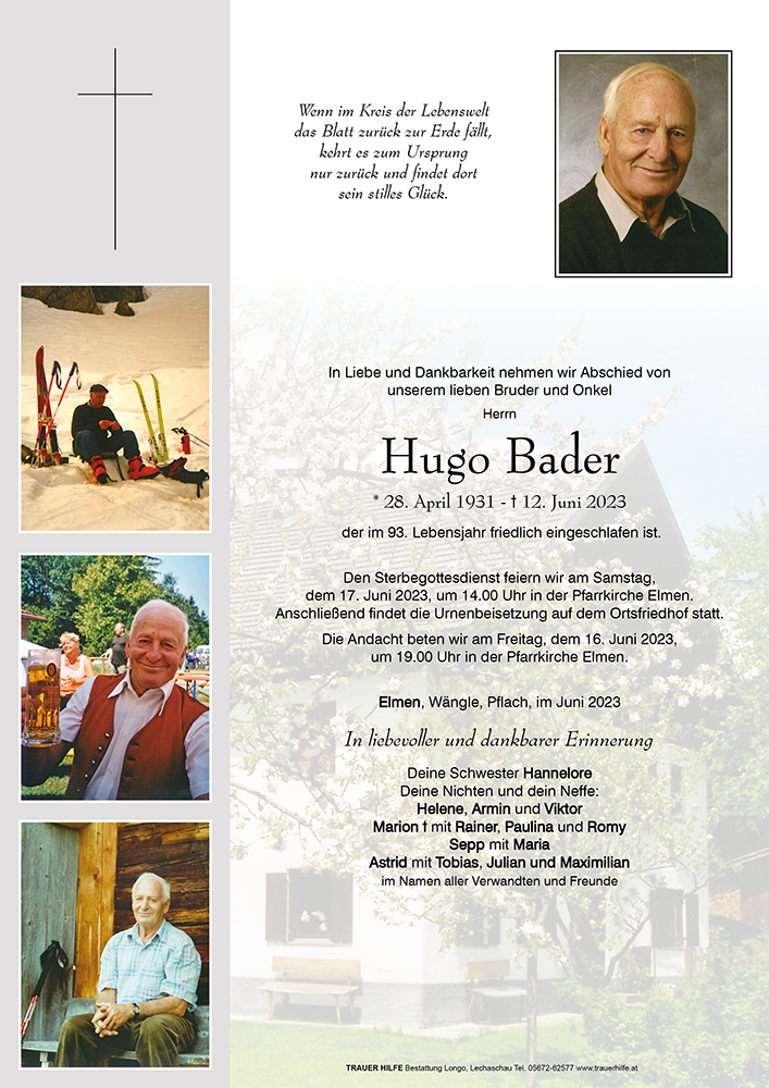 Danke Hugo für die Freundschaft die Du meinem Papa entgegen gebracht hast, Ruhe in Frieden Oskar Elmen Wängle Oskar Friedle -Elmen-Wängle 15.06.2023 um 13:34 Uhr