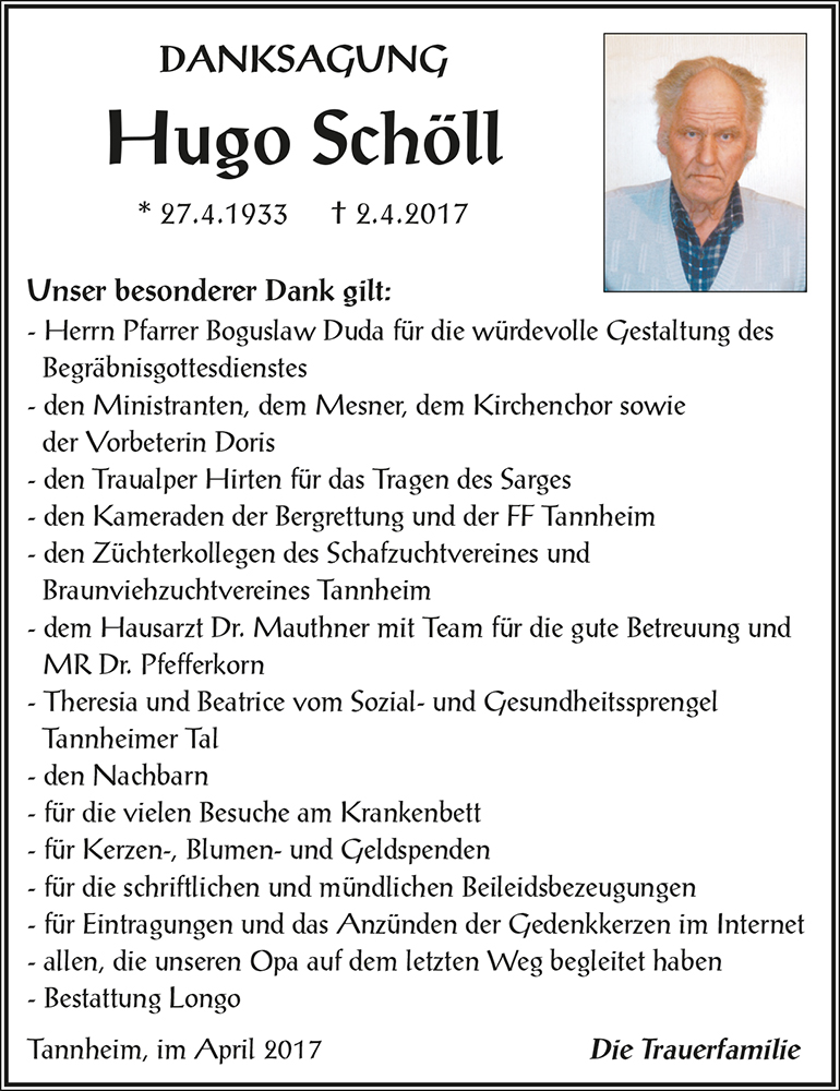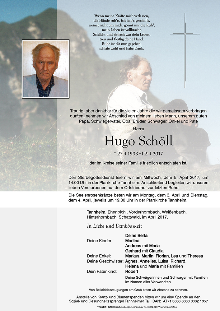 Kondolenzbuch für Hugo Schöll
