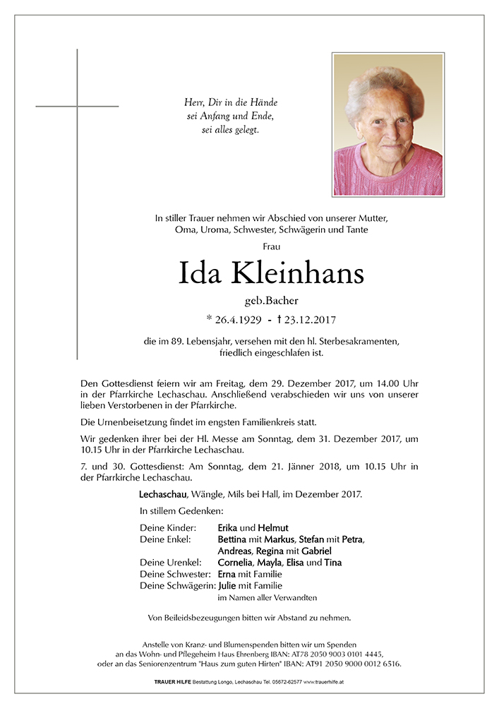 Liebe Familie Kleinhans,