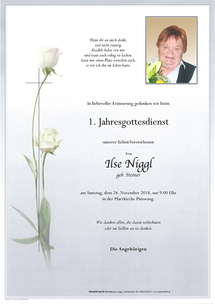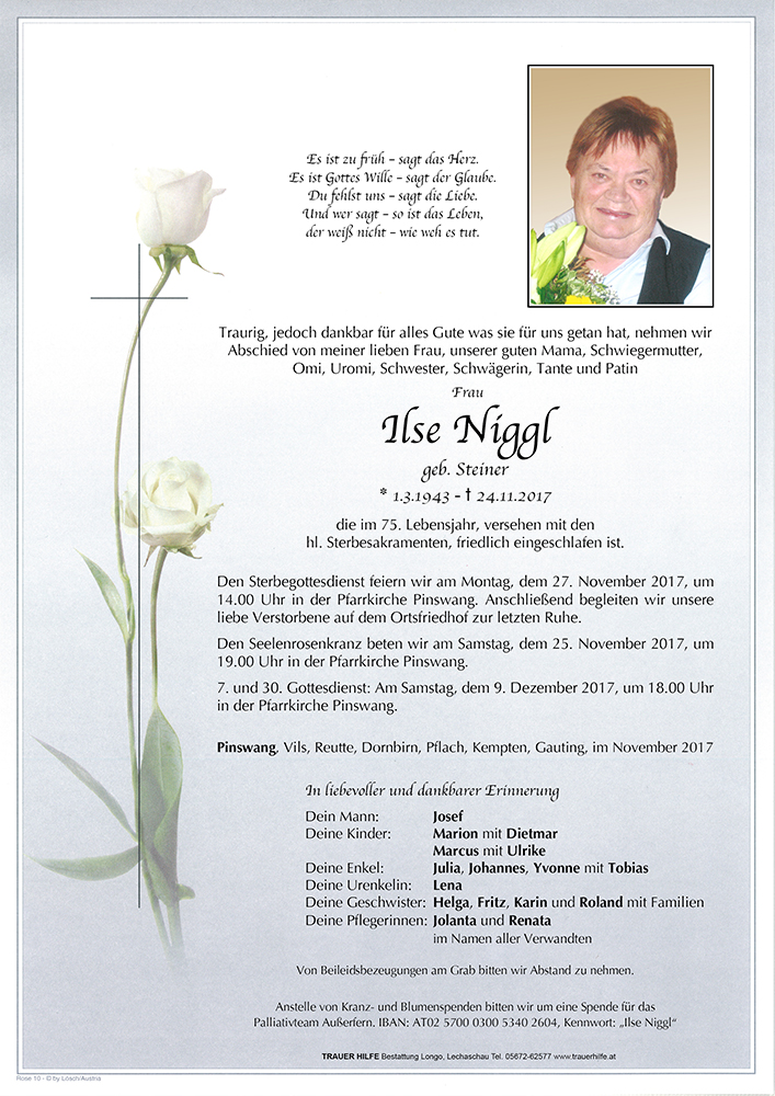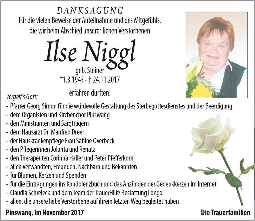 Kondolenzbuch für Ilse Niggl