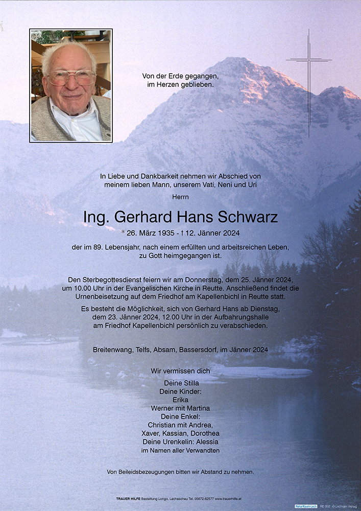 Kondolenzbuch für Ing. Gerhard Hans Schwarz