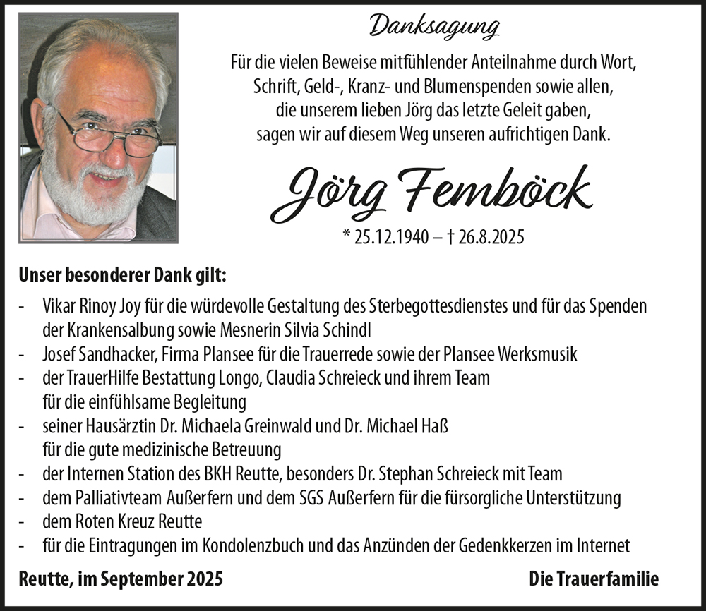 Wir sind ihm für sein Wirken und Mitgestalten sehr dankbar und werden Jörg stets ein ehrendes Andenken bewahren.