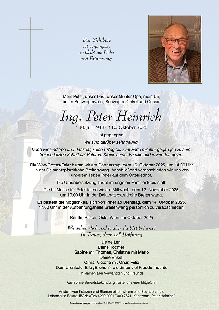 Zum Ableben von Peter entbieten wir euch unser tiefes Mitgefühl.