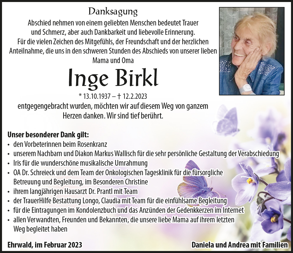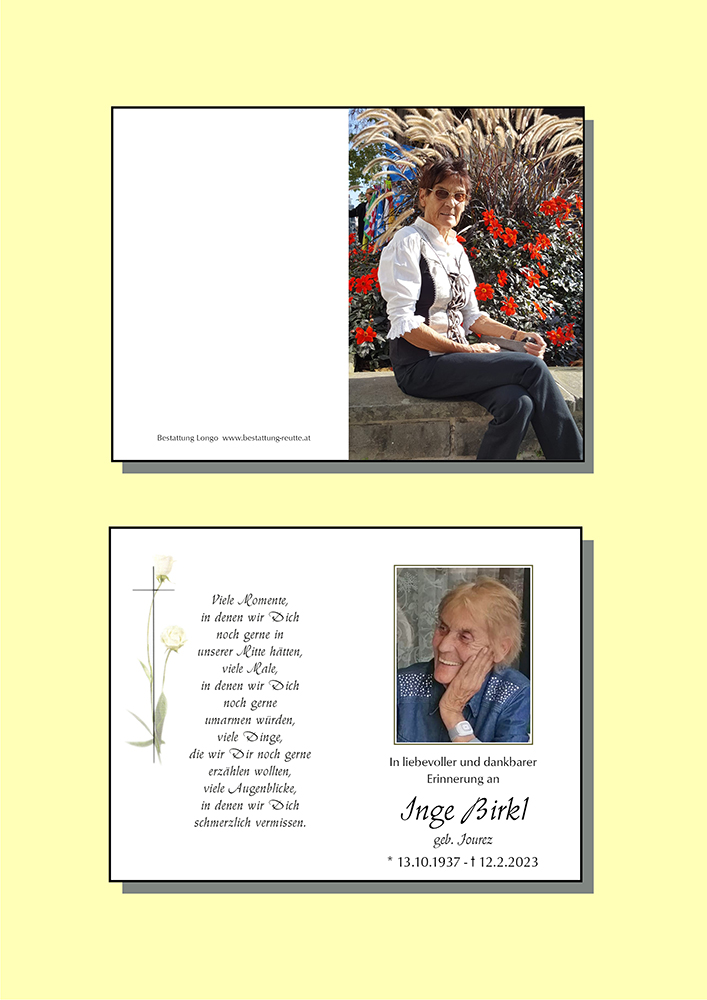 Mein aufrichtiges Beileid und Mitgefühl zum Heimgang eurer lieben Inge. Ich werde ihre positive und lustige Art nie vergessen.