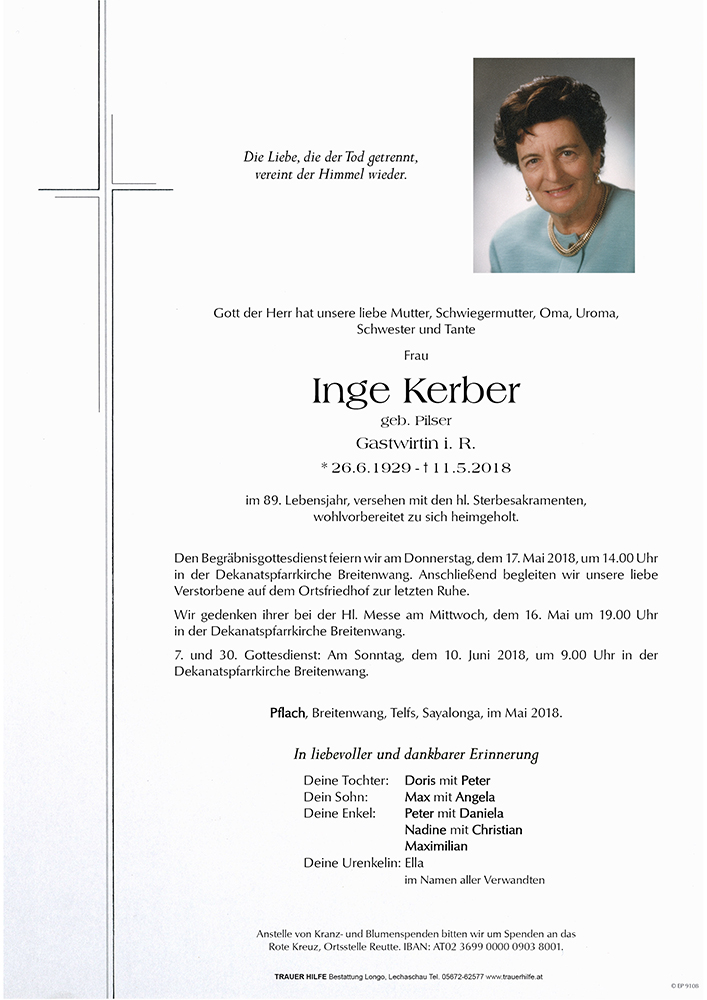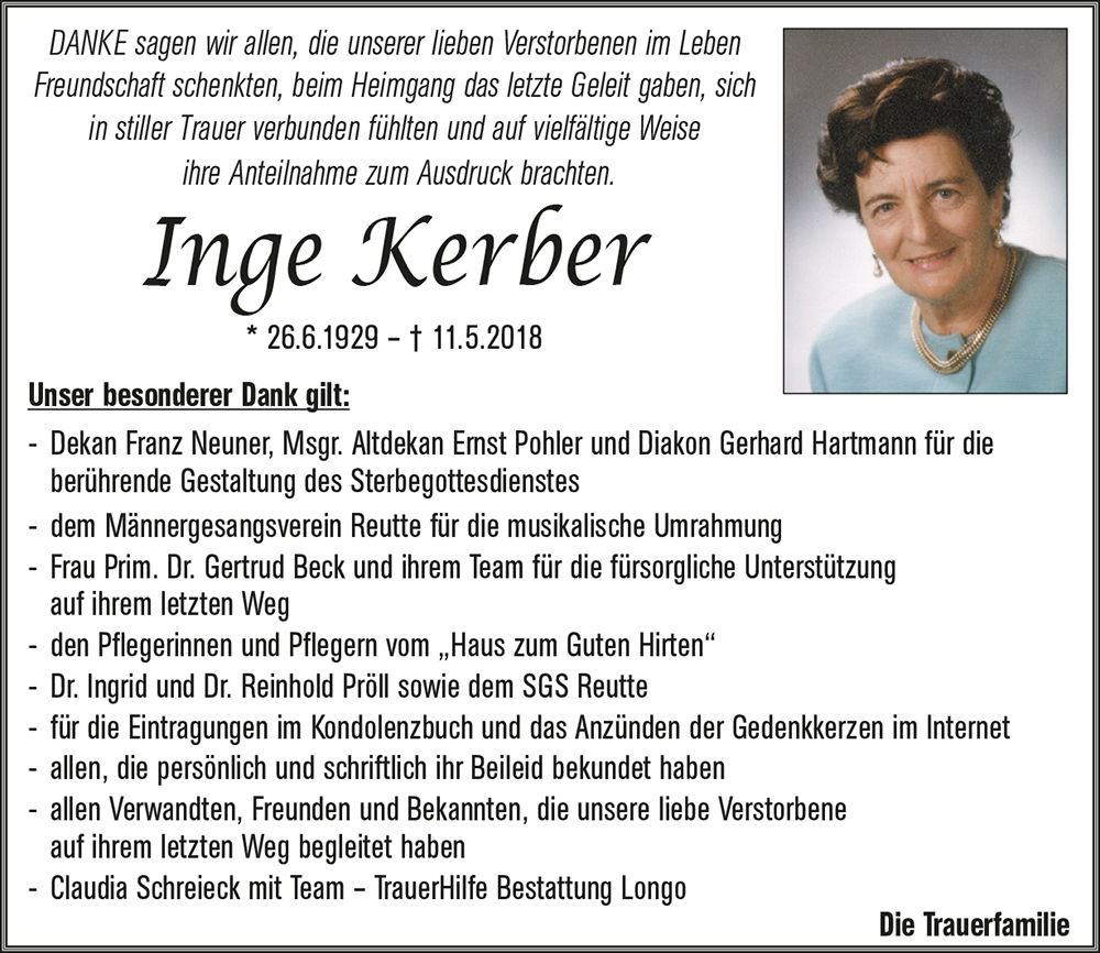 In aufrichtiger Anteilnahme drücken wir unser tiefes Mitgefühl aus. Reinhold u. Astrid Heiserer
