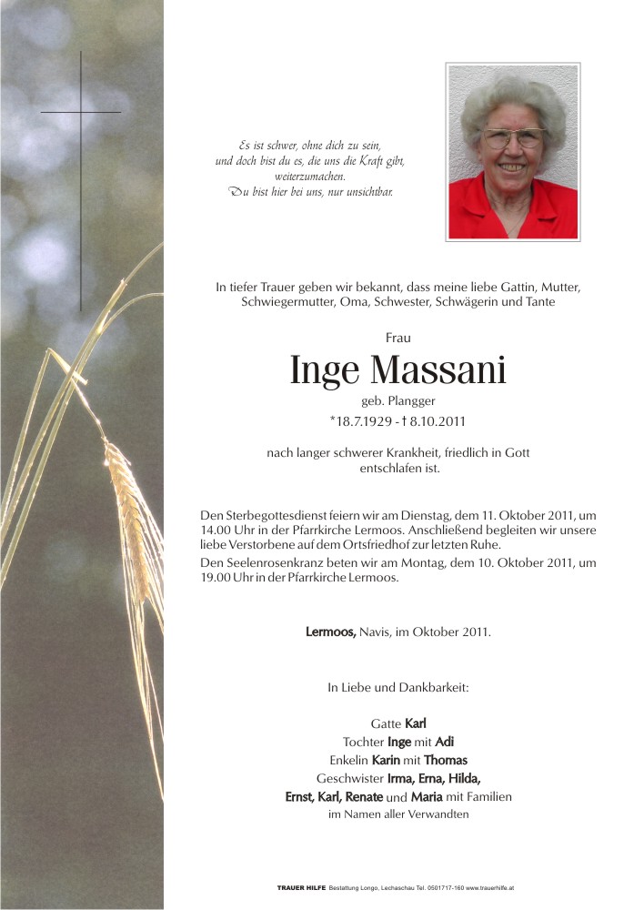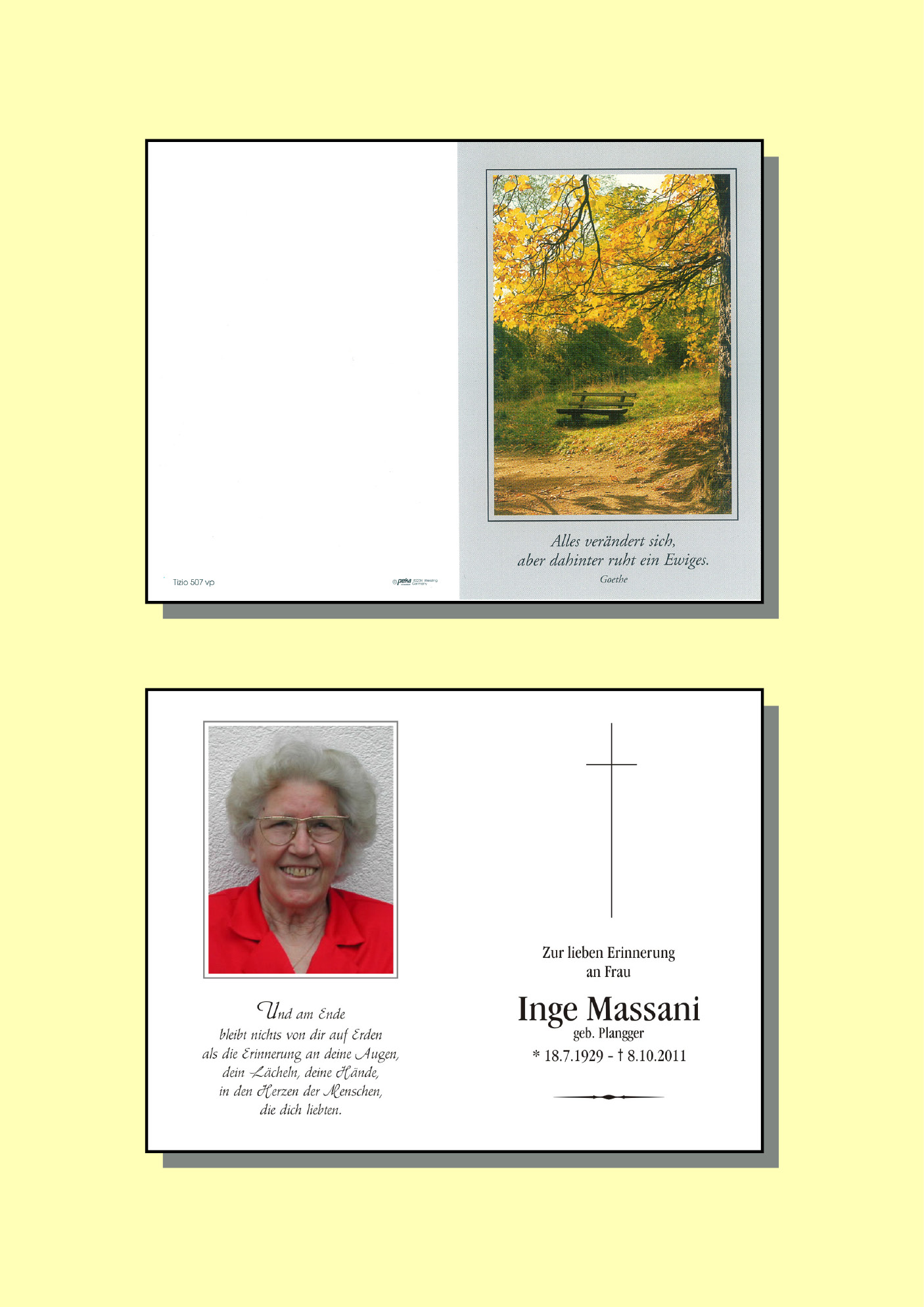 13.12.1901 08.10.2011 Lermoos Inge Massani Action Parte Sterbebild Gedenkkerzen Kondolenzen Danksagung Parte Sterbebild Gedenkkerzen Kondolenzen Danksagung Parte herunterladen Sterbebild herunterladen Gedenkkerzen für Inge Massani 7 Einträge Kerze anzünden Neujahrskerze für dich Geborgenheit im Himmel Geborgenheit im Himmel Ruhe sanft in Gottes Hand Osterkerze A Liachtl für di In liebevoller Erinnerung! V. Ihre Gedenkkerze fürInge Massani Ihr Name* Farbe auswählen Ihre Nachricht oder Name* E-Mail-Adresse* Mit dem Klicken auf "Kerze anzünden" erklären Sie sich mit unseren Datenschutzbestimmungen einverstanden. Kondolenzbuch für Inge Massani 1 Eintrag Kondolenz verfassen Wir sind in Gedanken bei dir und deinen trauernden Angehörigen. Mögest du bei Gott deine ewige Ruhe finden und den Dank für deinen Einsatz für deine Lieben erfahren. Josef Muigg - Spörr 10.10.2011 um 10:12 Uhr Ihr Abschiedsgruß an Inge Massani Ihr Name* E-Mail-Adresse* Ihre Nachricht* Mit dem Klicken auf "Gruß absenden" erklären Sie sich mit unseren Datenschutzbestimmungen einverstanden. Danksagung herunterladen