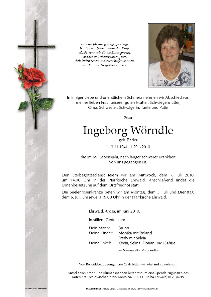 13.12.1901 29.06.2010 Ehrwald Ingeborg Wörndle Action Parte Sterbebild Gedenkkerzen Kondolenzen Parte Sterbebild Gedenkkerzen Kondolenzen Parte herunterladen Sterbebild herunterladen Gedenkkerzen für Ingeborg Wörndle 1 Eintrag Kerze anzünden Ruhe in Frieden Ihre Gedenkkerze fürIngeborg Wörndle Ihr Name* Farbe auswählen Ihre Nachricht oder Name* E-Mail-Adresse* Mit dem Klicken auf "Kerze anzünden" erklären Sie sich mit unseren Datenschutzbestimmungen einverstanden. Kondolenzbuch für Ingeborg Wörndle 0 Einträge Kondolenz verfassen Ihr Abschiedsgruß an Ingeborg Wörndle Ihr Name* E-Mail-Adresse* Ihre Nachricht* Mit dem Klicken auf "Gruß absenden" erklären Sie sich mit unseren Datenschutzbestimmungen einverstanden.