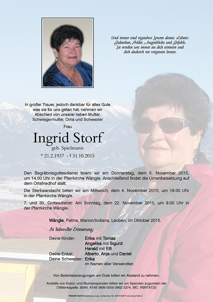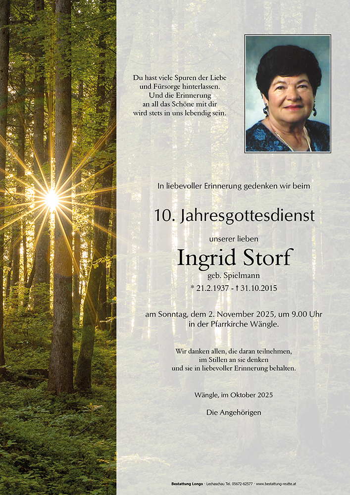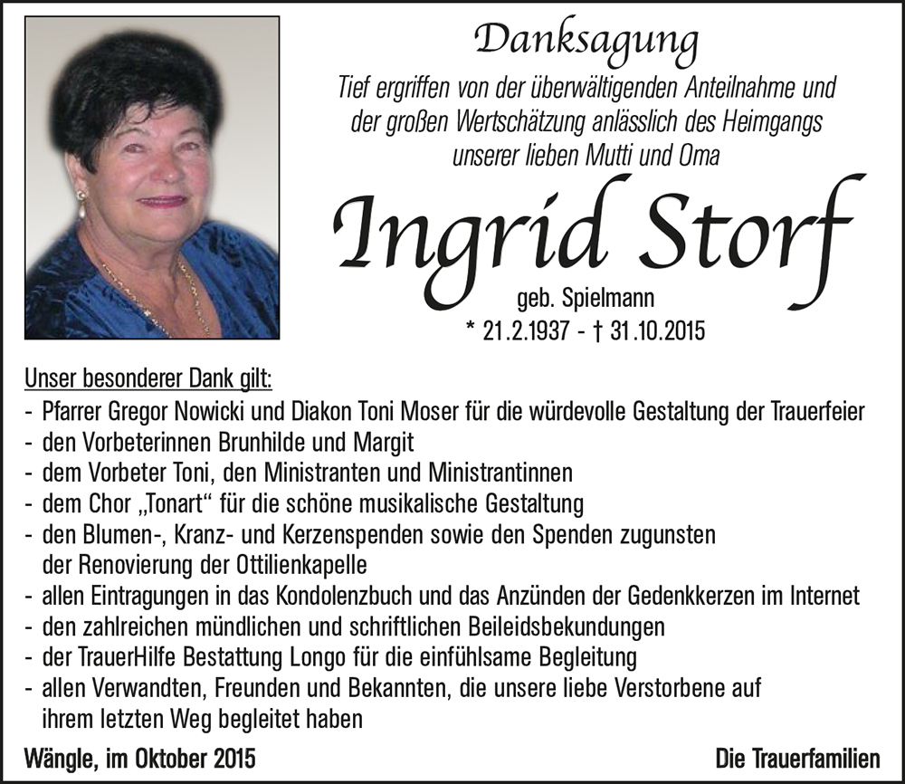 Kondolenzbuch für Ingrid Storf