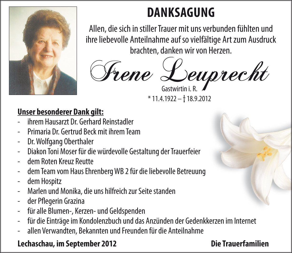 Kondolenzbuch für Irene Leuprecht
