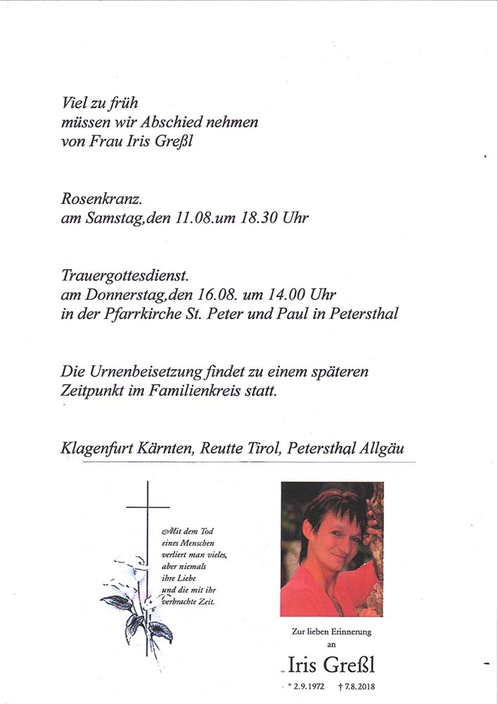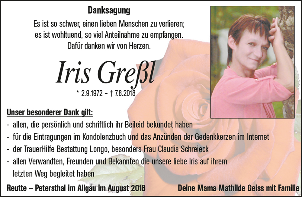Danke, liebe Iris das ich einen Teil deines Lebens mit dir verbringen durfte.
