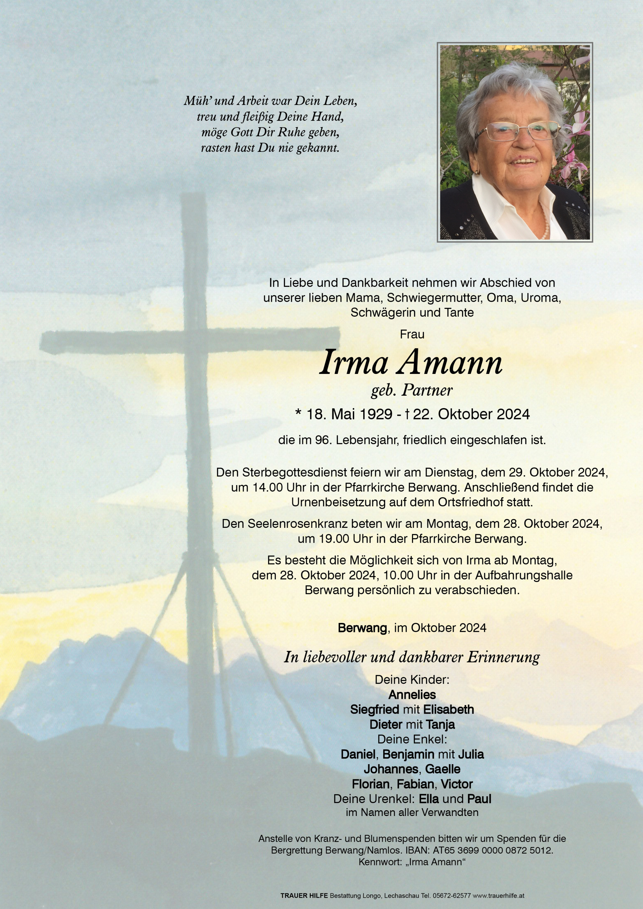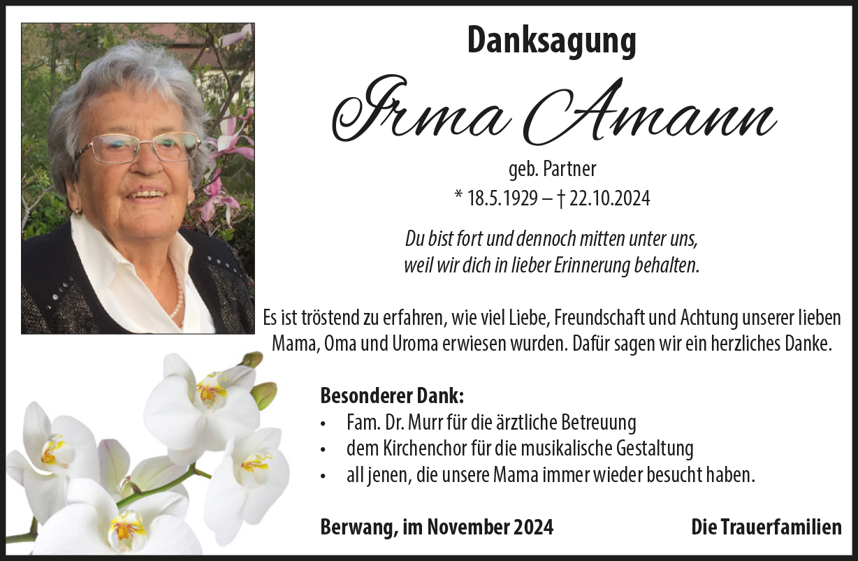 Kondolenzbuch für Irma Amann