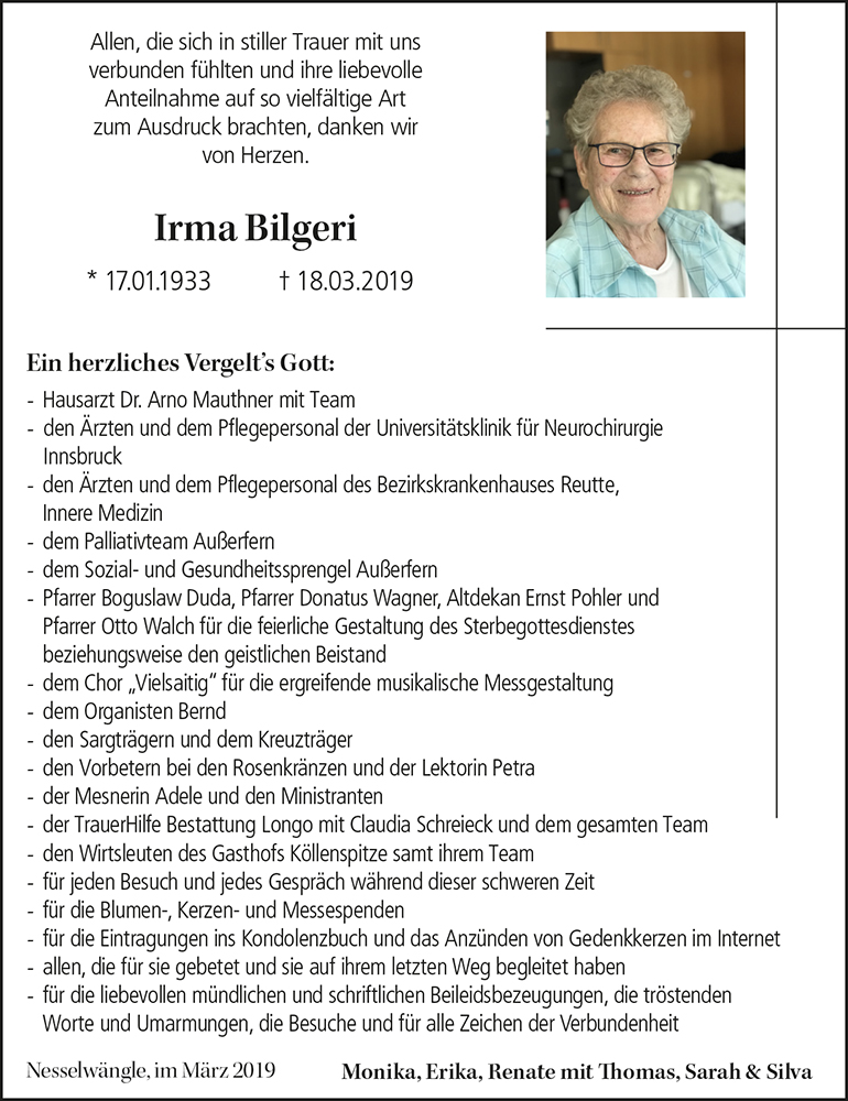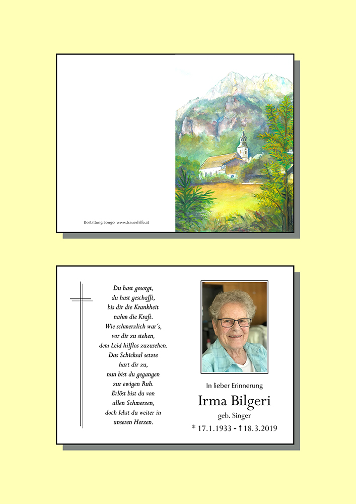 Kondolenzbuch für Irma Bilgeri