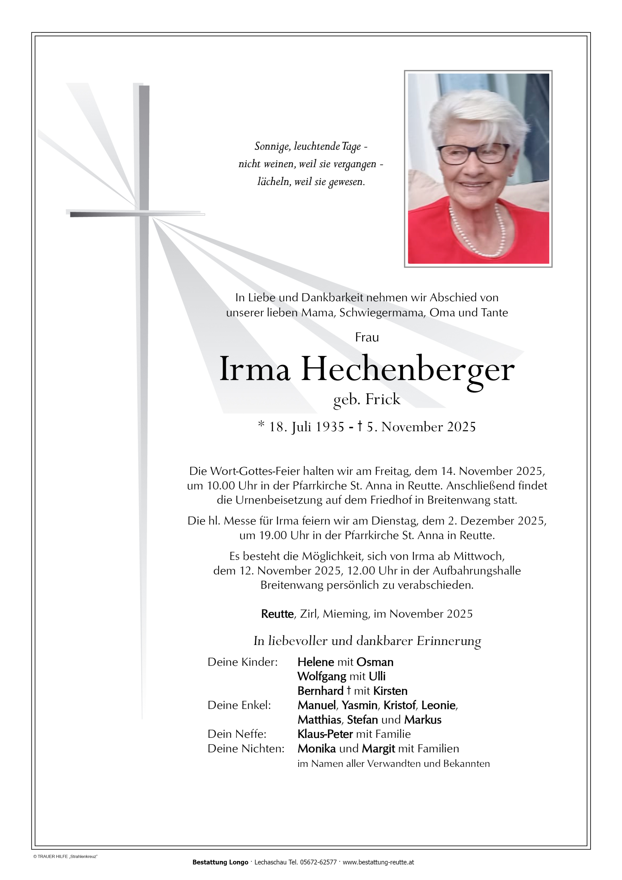 Kondolenzbuch für Irma Hechenberger