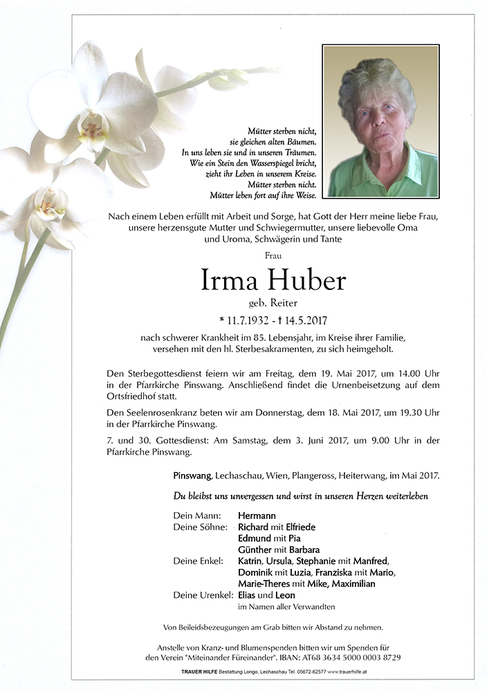 wir möchten auf diesem Wege unsere aufrichtige Anteilnahme am Tode eurer geliebten Verstorbenen zum Ausdruck bringen. Sie möge ruhen in Frieden.