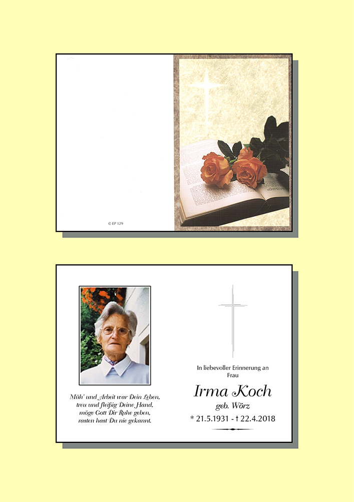Kondolenzbuch für Irma Koch