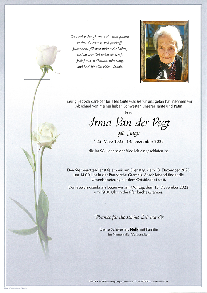 Herzliches Beileid an die gesamte Trauerfamilie in Gramais.