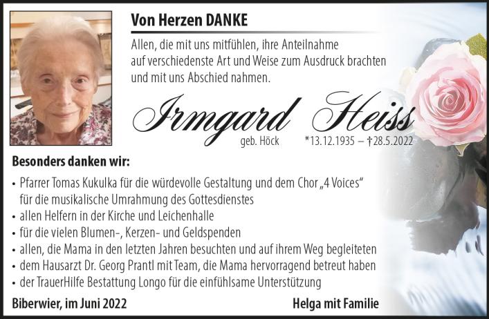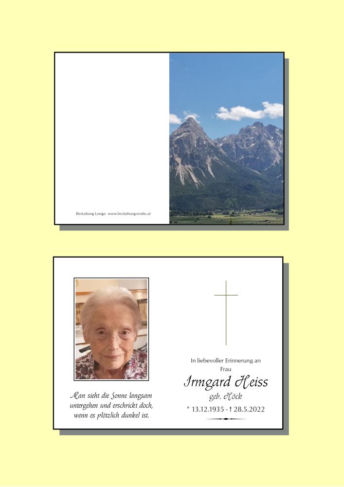 Kondolenzbuch für Irmgard Heiss