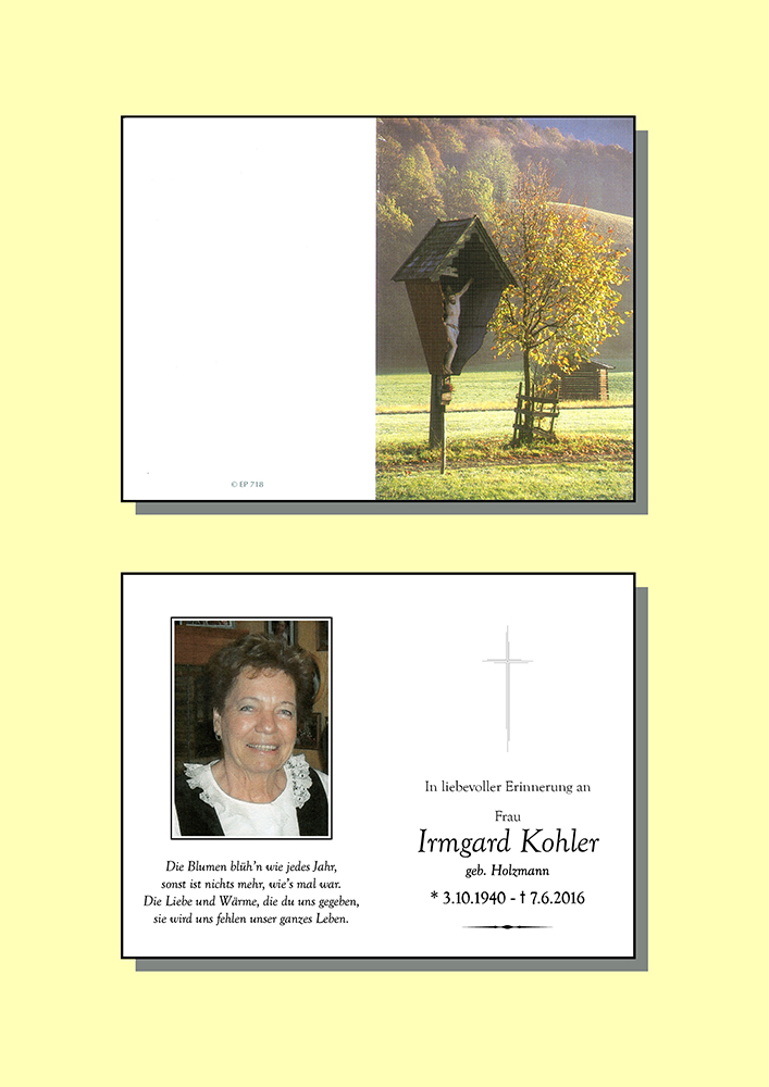 Kondolenzbuch für Irmgard Kohler