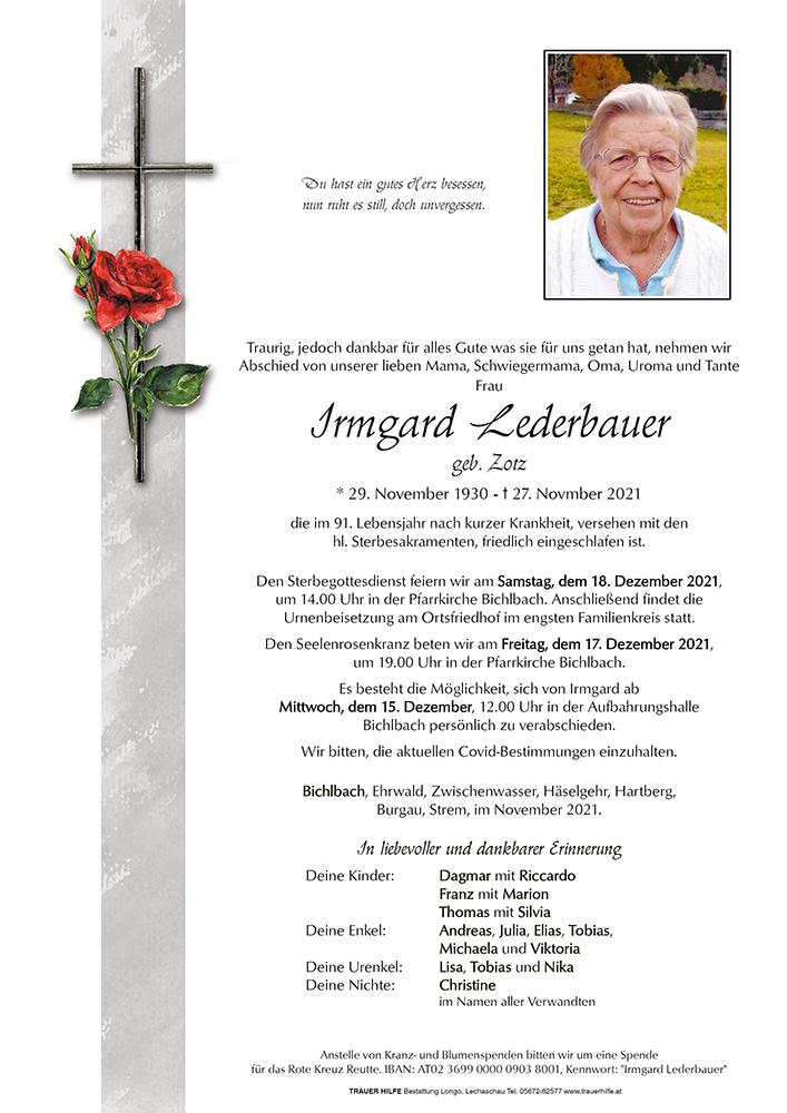 Ruhe in Frieden Irmgard Fam Kainz Heiterwang