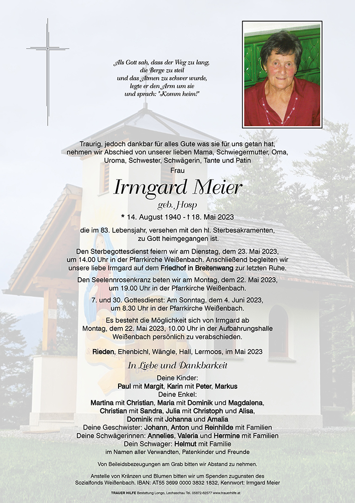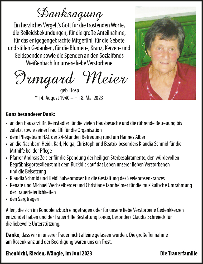 Kondolenzbuch für Irmgard Meier