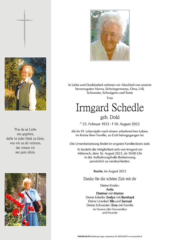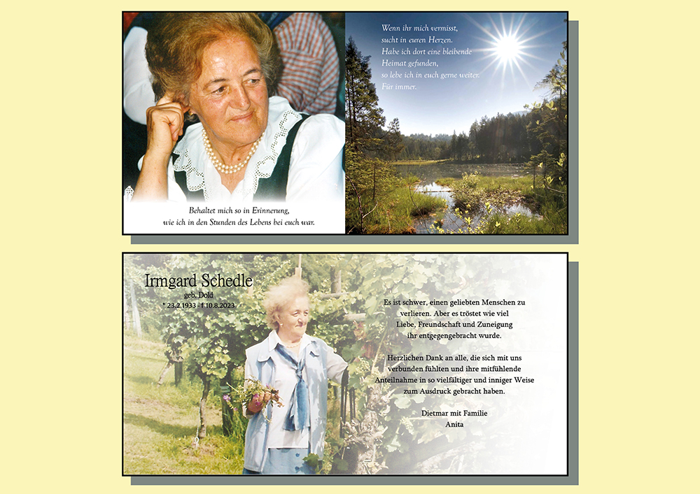 Kondolenzbuch für Irmgard Schedle