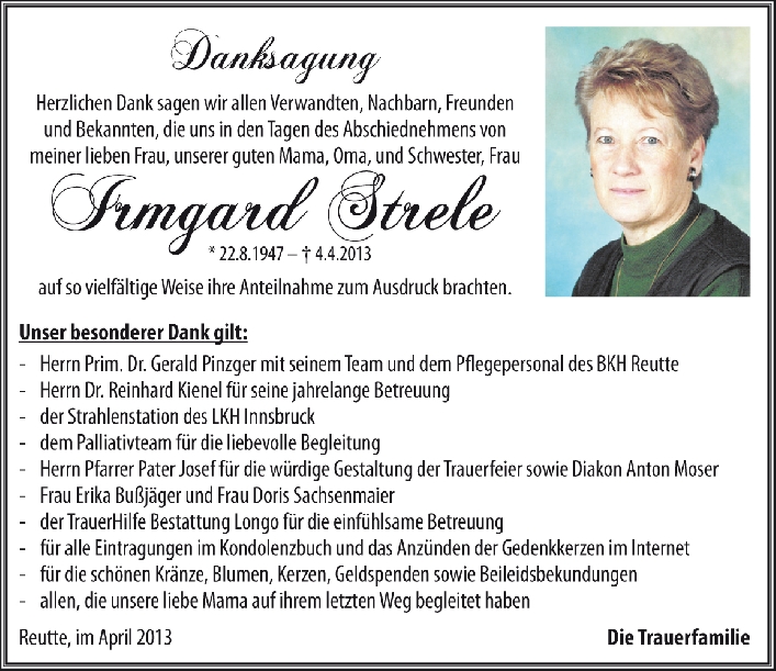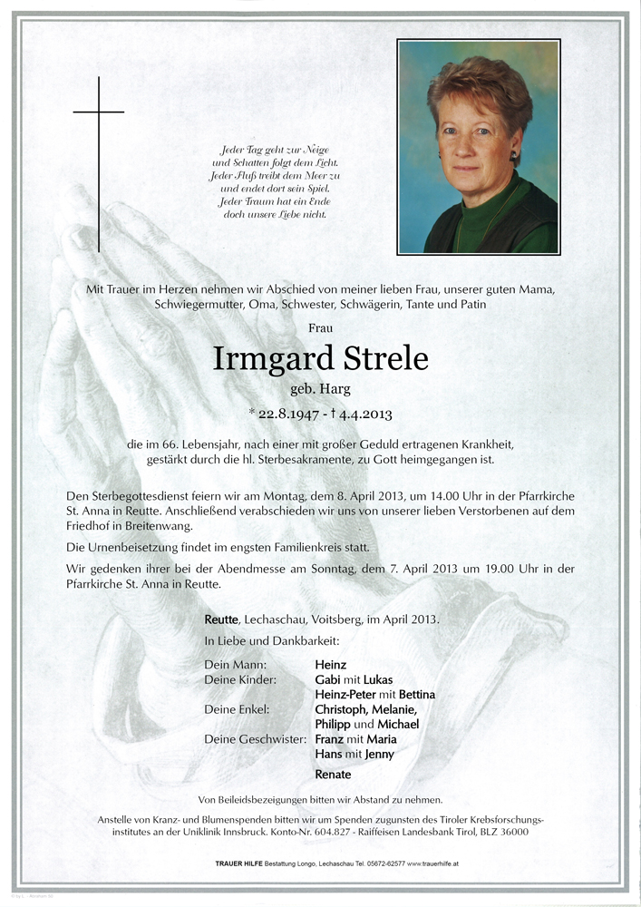 daß Irmgard für immer in Euren Herzen weiterlebt.