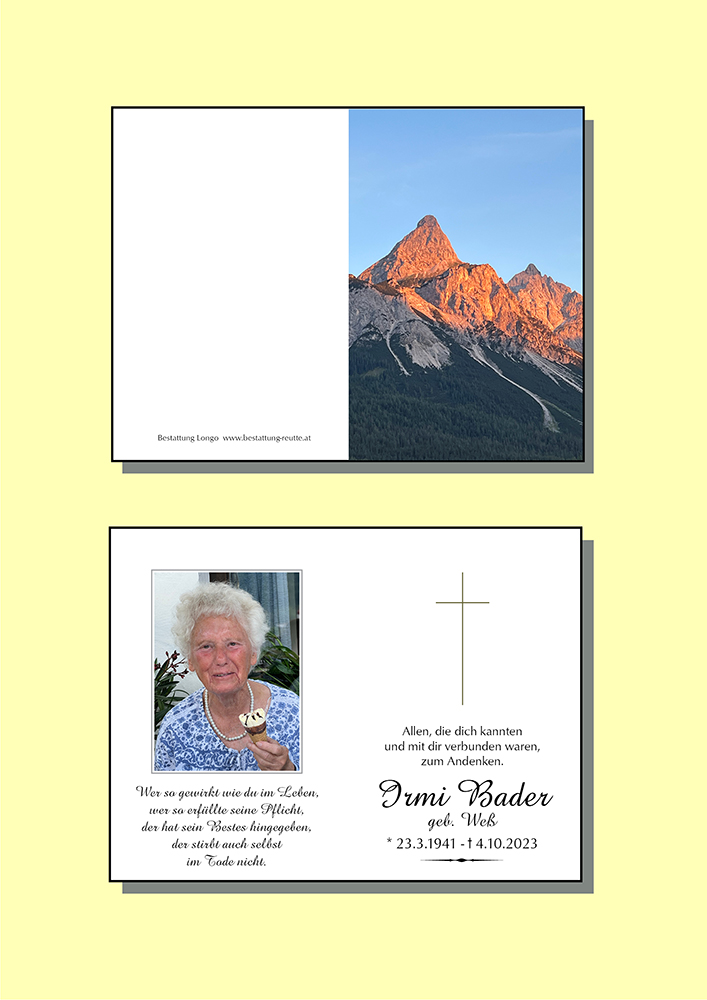 Kondolenzbuch für Irmi Bader