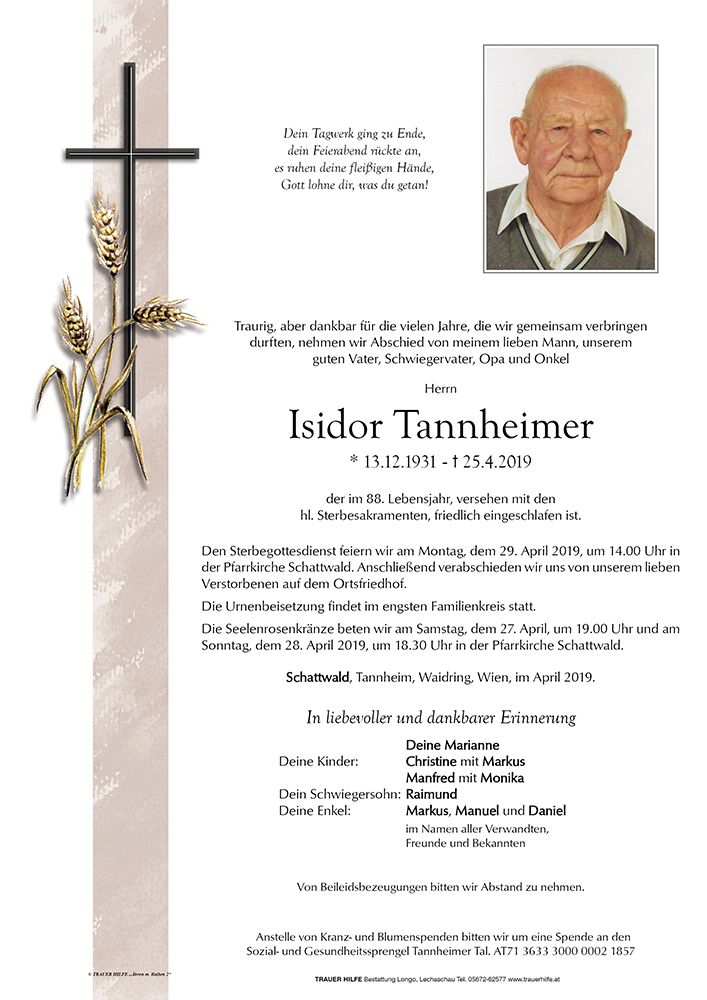 Mit dem Tot eines Menschen verliert man vieles. Nicht aber die gemeinsam verbrachte schöne Zeit, In stiller Trauer und Verbundenheit Degenberger Alois