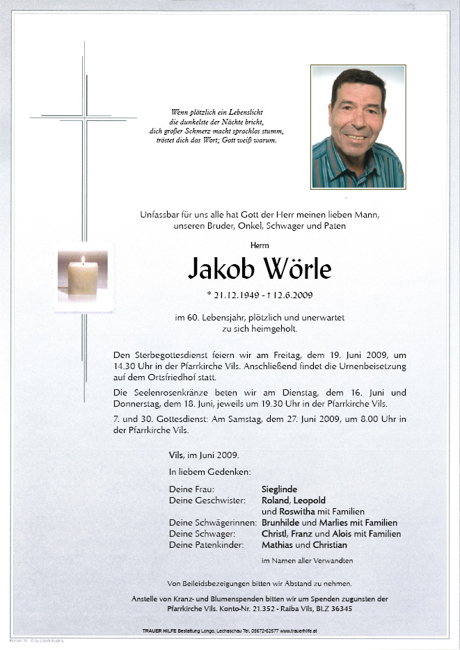 13.12.1901 12.06.2009 Vils Jakob Wörle Action Parte Gedenkkerzen Kondolenzen Parte Gedenkkerzen Kondolenzen Parte herunterladen Gedenkkerzen für Jakob Wörle 3 Einträge Kerze anzünden Ein Licht für dich ein Licht für dich! . . . diese KERZE leuchte DIR. . . Ihre Gedenkkerze fürJakob Wörle Ihr Name* Farbe auswählen Ihre Nachricht oder Name* E-Mail-Adresse* Mit dem Klicken auf "Kerze anzünden" erklären Sie sich mit unseren Datenschutzbestimmungen einverstanden. Kondolenzbuch für Jakob Wörle 0 Einträge Kondolenz verfassen Ihr Abschiedsgruß an Jakob Wörle Ihr Name* E-Mail-Adresse* Ihre Nachricht* Mit dem Klicken auf "Gruß absenden" erklären Sie sich mit unseren Datenschutzbestimmungen einverstanden.
