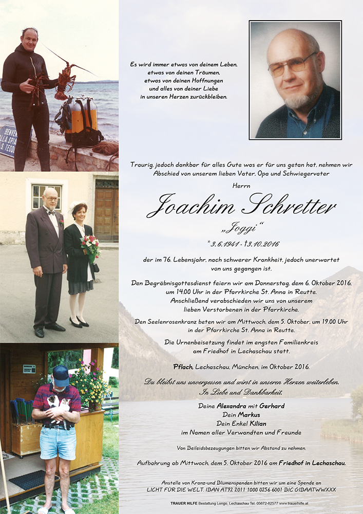 Wir möchten Euch unsere Betroffenheit und unser Mitgefühl ausdrücken. Wir haben Joggis Begeisterung für das Tauchen und das Meer geteilt und behalten viele gemeinsame Erlebnisse mit ihm in guter Erinnerung. Er war ein Mensch, auf den man sich stets verlassen konnte und der immer hilfsbereit war.