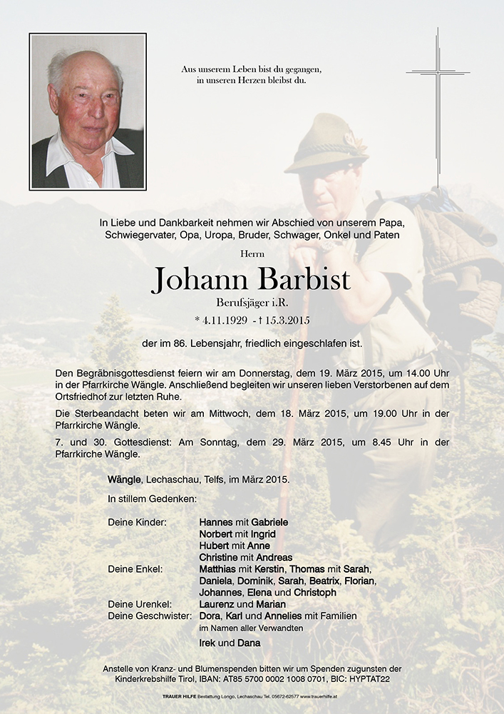 Ihr werdet Trost und Kraft finden in der schönen Erinnerung an eure Eltern,