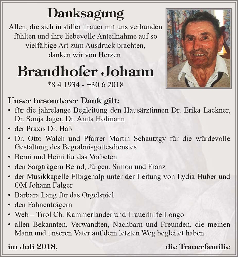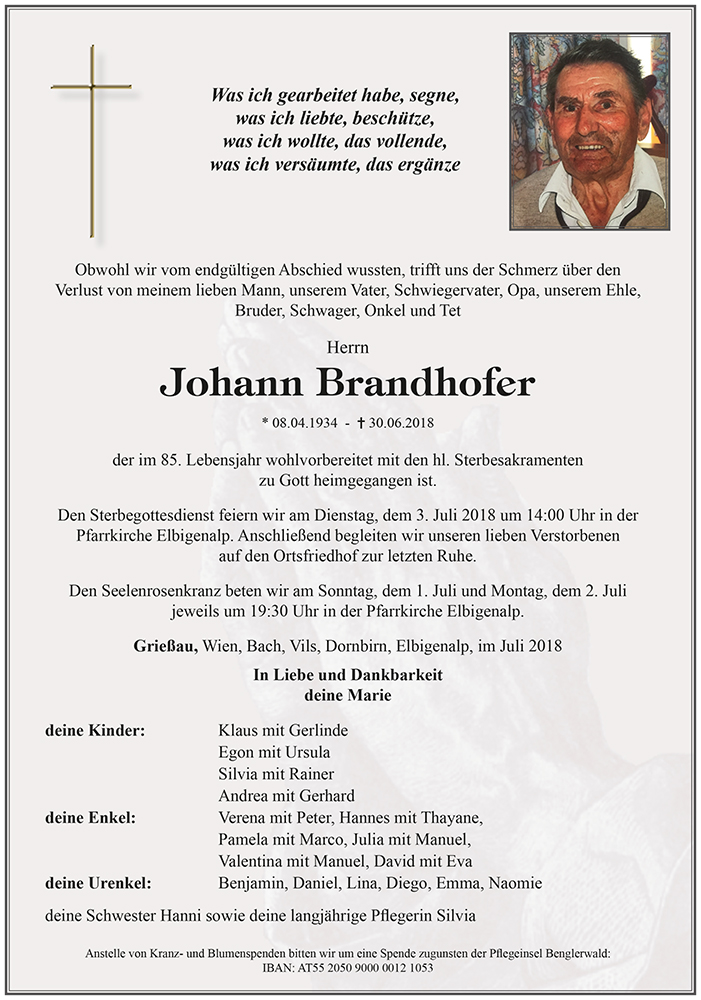 Kondolenzbuch fĂŒr Johann Brandhofer