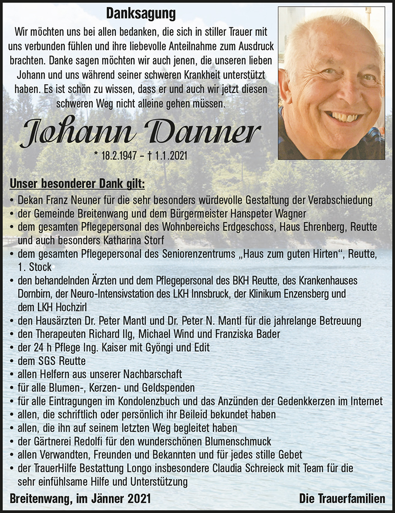 Kondolenzbuch für Johann Danner