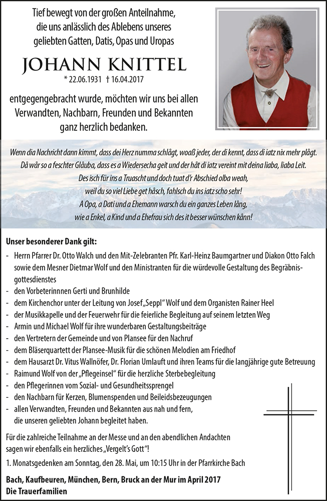 Lieber Johann , du bist jetzt bei den Engeln und wachst jetzt über deine liebe Frau und deiner Familie .Hier auf Erden werden wir dich vermisst!