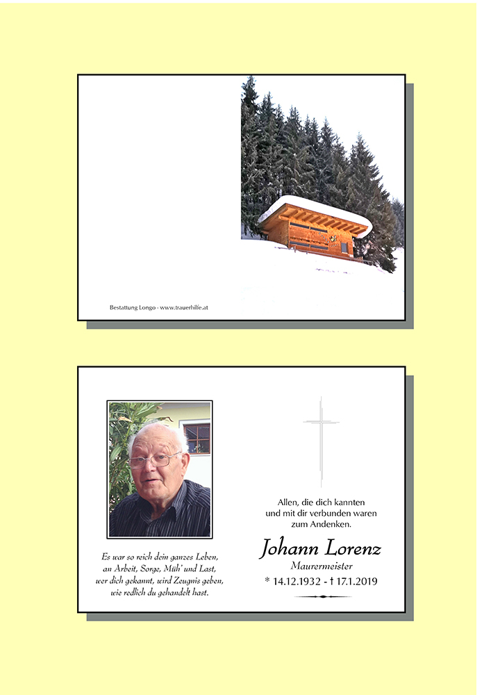 in tiefer Betroffenheit habe ich vom Tode Johann\'s erfahren.