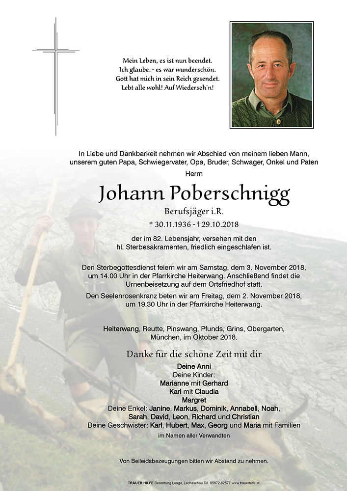 Ein markanter Ausserferner Berufsjäger ist zu seinem letzten Pirschgang angetreten.