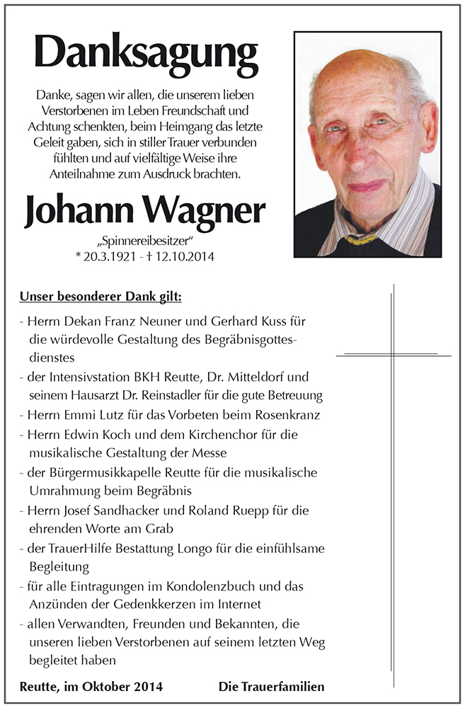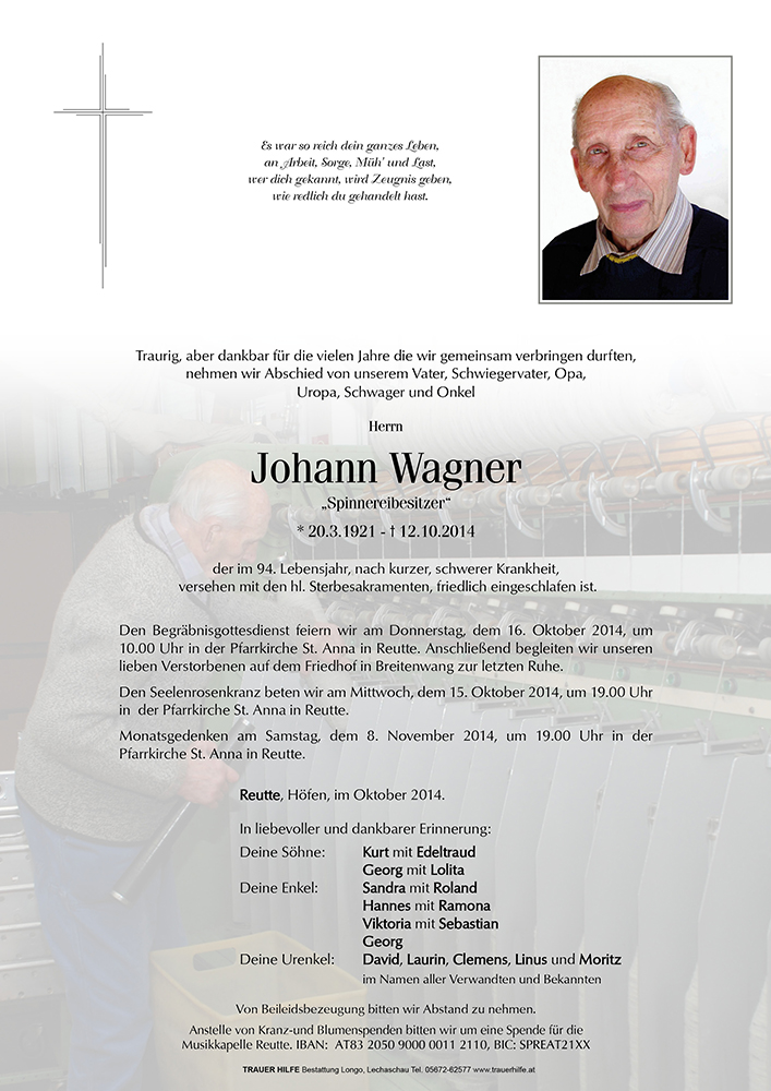 Durch Krankenhausaufenthalt habe ich erst jetzt vom Tode meines Musikkameraden, Ehrenmitglied der Bürgermusik Reutte Hansl Wagner erfahren.