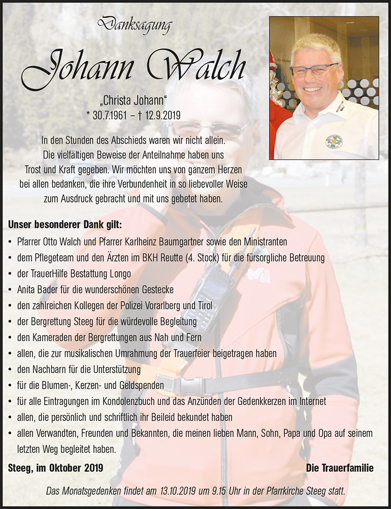 Gemeinde Steeg - Der Bürgermeister 16.09.2019 um 10:03 Uhr