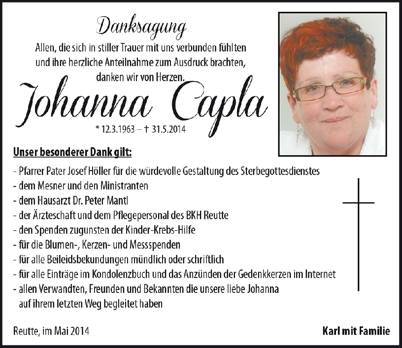 Aufrichtige Anteilnahme entbietet Brigitte mit Familie