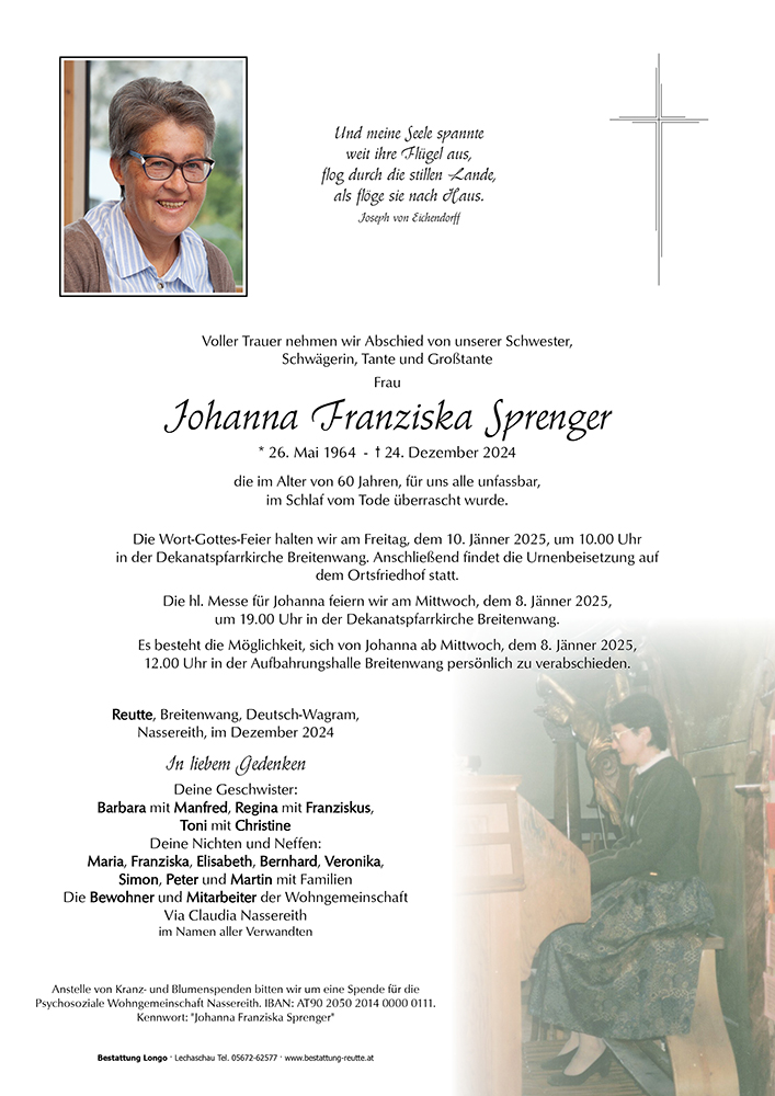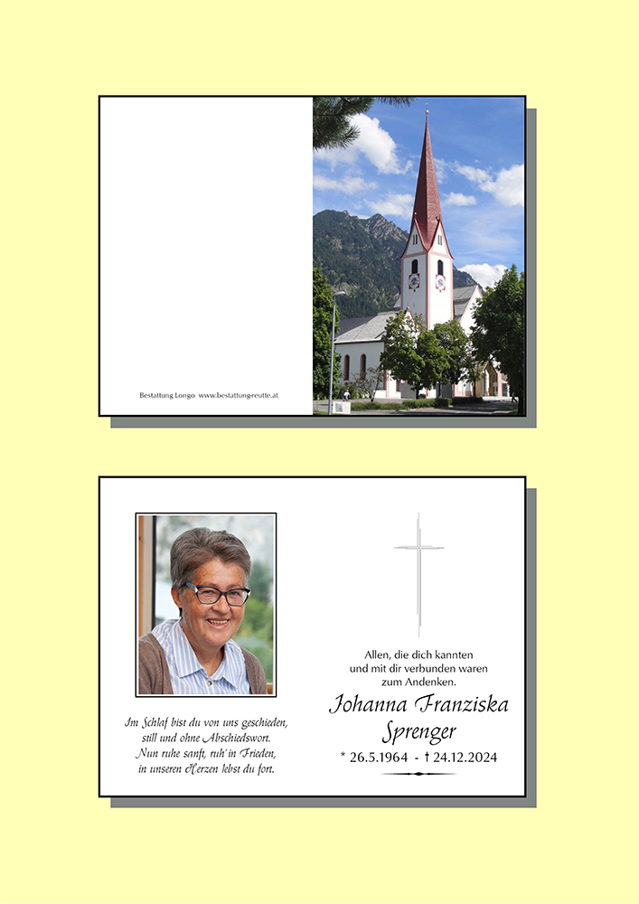 Kondolenzbuch für Johanna Franziska Sprenger