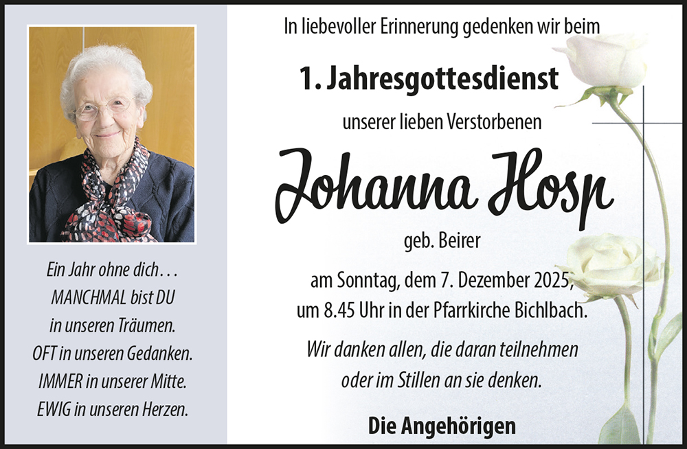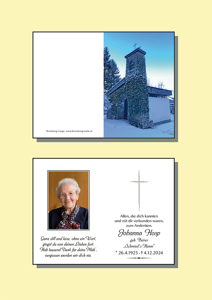 Kondolenzbuch für Johanna Hosp