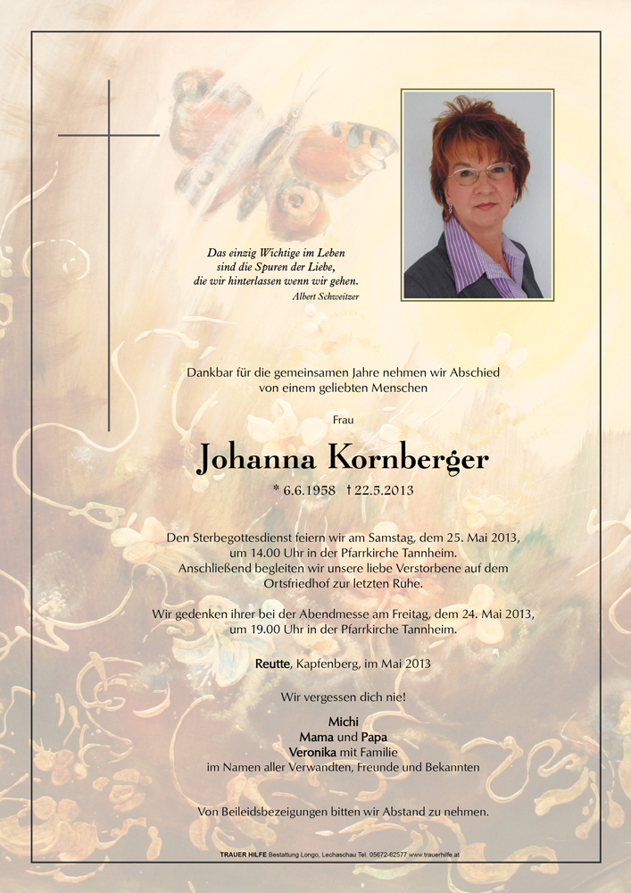 Kondolenzbuch für Johanna Kornberger