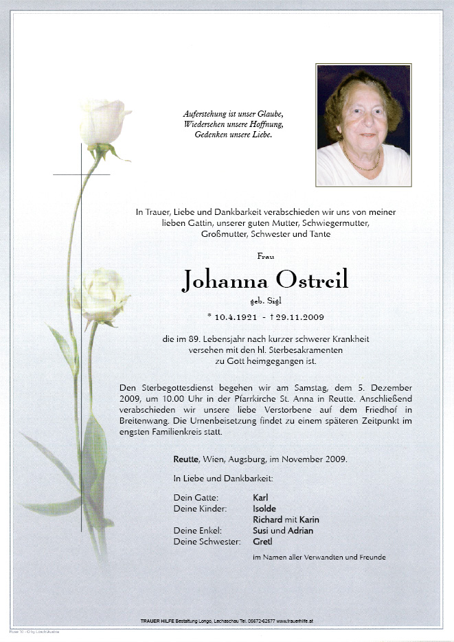 13.12.1901 29.11.2009 Reutte Johanna Ostrcil Action Parte Gedenkkerzen Kondolenzen Parte Gedenkkerzen Kondolenzen Parte herunterladen Gedenkkerzen für Johanna Ostrcil 0 Einträge Kerze anzünden Ihre Gedenkkerze fürJohanna Ostrcil Ihr Name* Farbe auswählen Ihre Nachricht oder Name* E-Mail-Adresse* Mit dem Klicken auf "Kerze anzünden" erklären Sie sich mit unseren Datenschutzbestimmungen einverstanden. Kondolenzbuch für Johanna Ostrcil 0 Einträge Kondolenz verfassen Ihr Abschiedsgruß an Johanna Ostrcil Ihr Name* E-Mail-Adresse* Ihre Nachricht* Mit dem Klicken auf "Gruß absenden" erklären Sie sich mit unseren Datenschutzbestimmungen einverstanden.