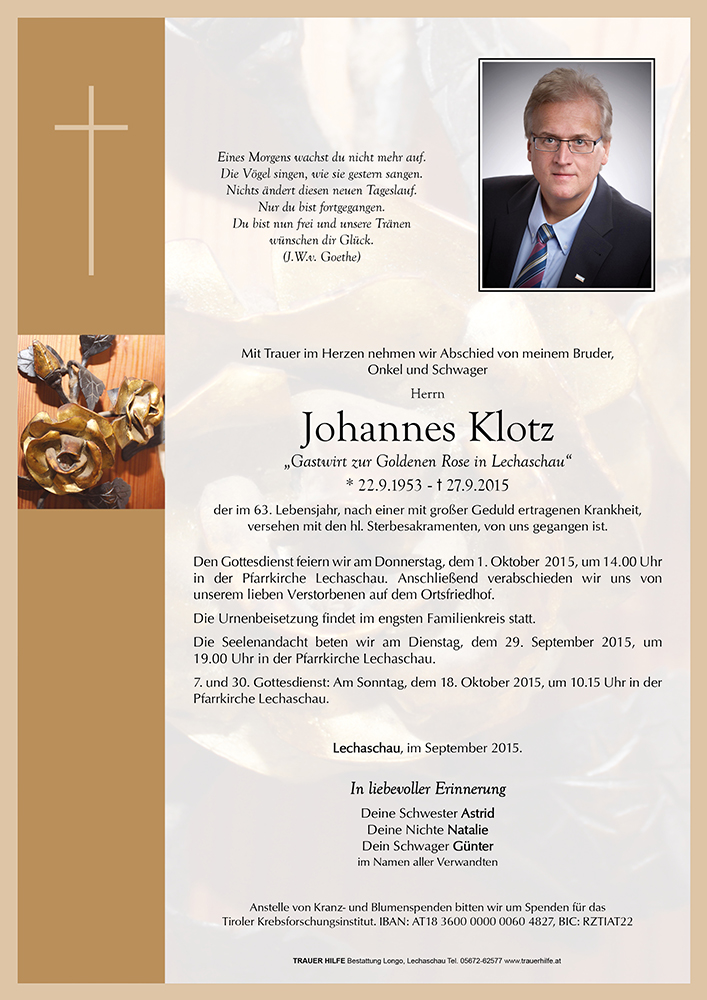 Kondolenzbuch für Johannes Klotz