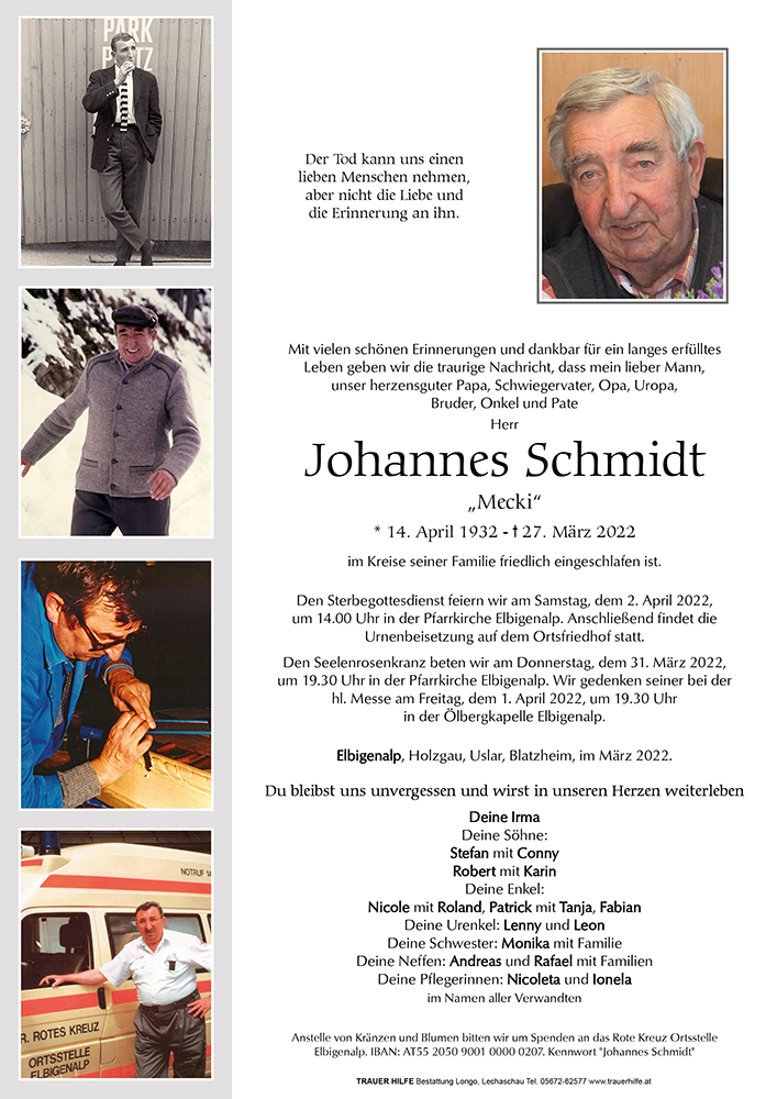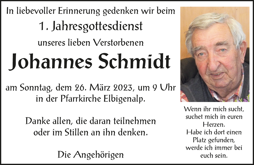 Kondolenzbuch für Johannes Schmidt