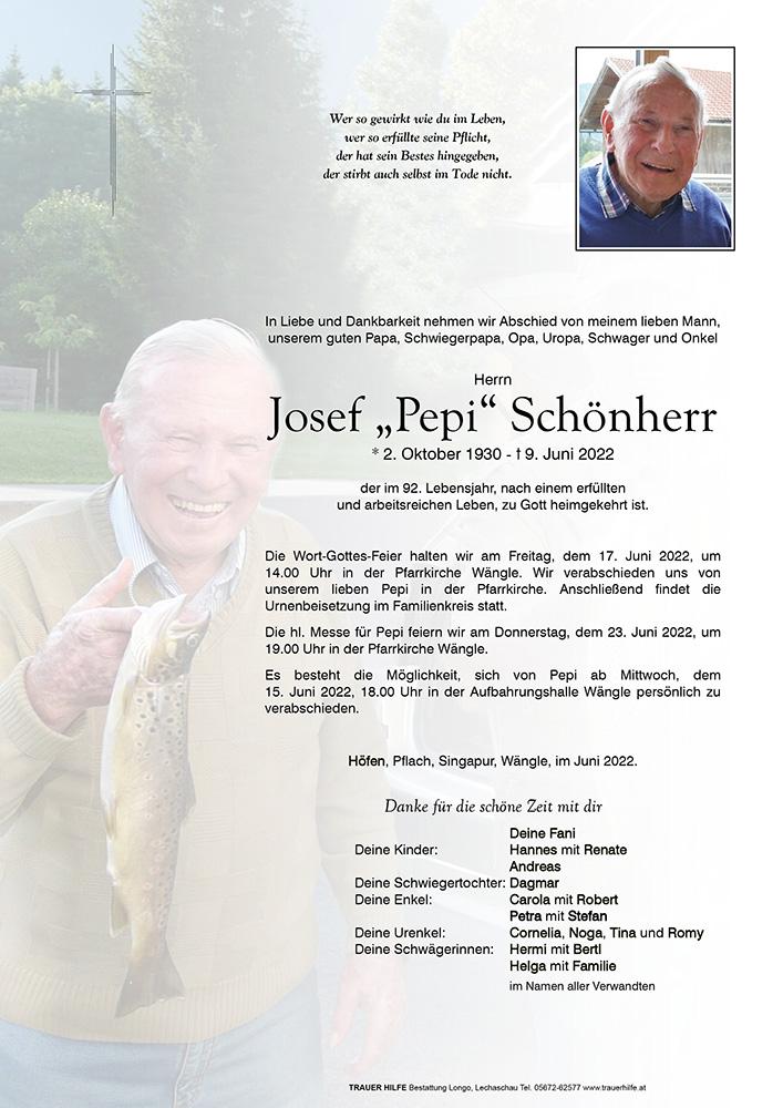 Kondolenzbuch für Josef "Pepi" Schönherr