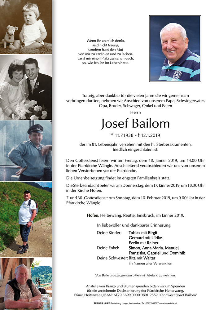 Kondolenzbuch für Josef Bailom
