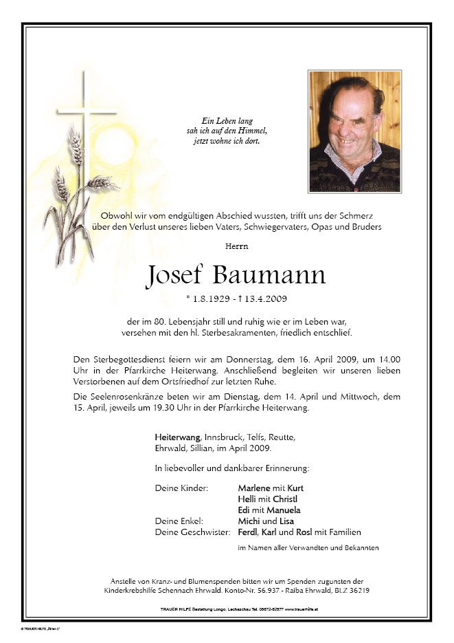 13.12.1901 13.04.2009 Heiterwang Josef Baumann Action Parte Gedenkkerzen Kondolenzen Parte Gedenkkerzen Kondolenzen Parte herunterladen Gedenkkerzen für Josef Baumann 0 Einträge Kerze anzünden Ihre Gedenkkerze fürJosef Baumann Ihr Name* Farbe auswählen Ihre Nachricht oder Name* E-Mail-Adresse* Mit dem Klicken auf "Kerze anzünden" erklären Sie sich mit unseren Datenschutzbestimmungen einverstanden. Kondolenzbuch für Josef Baumann 0 Einträge Kondolenz verfassen Ihr Abschiedsgruß an Josef Baumann Ihr Name* E-Mail-Adresse* Ihre Nachricht* Mit dem Klicken auf "Gruß absenden" erklären Sie sich mit unseren Datenschutzbestimmungen einverstanden.