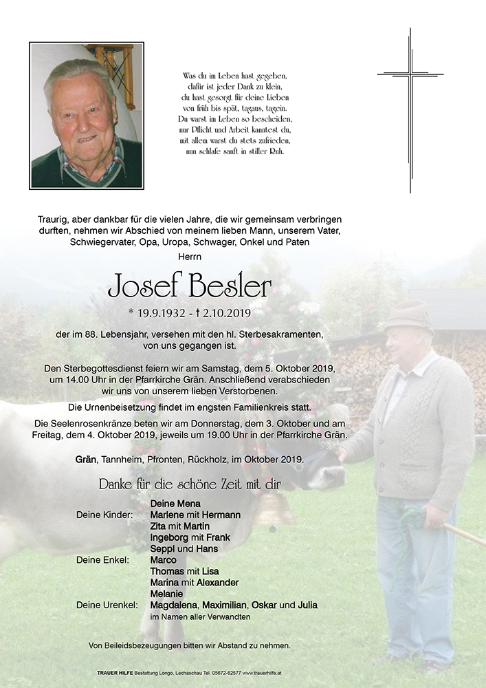 Und immer sind da Spuren Deines Lebens, Gedanken, Bilder und Augenblicke – sie werden uns an Dich, Josef, erinnern,